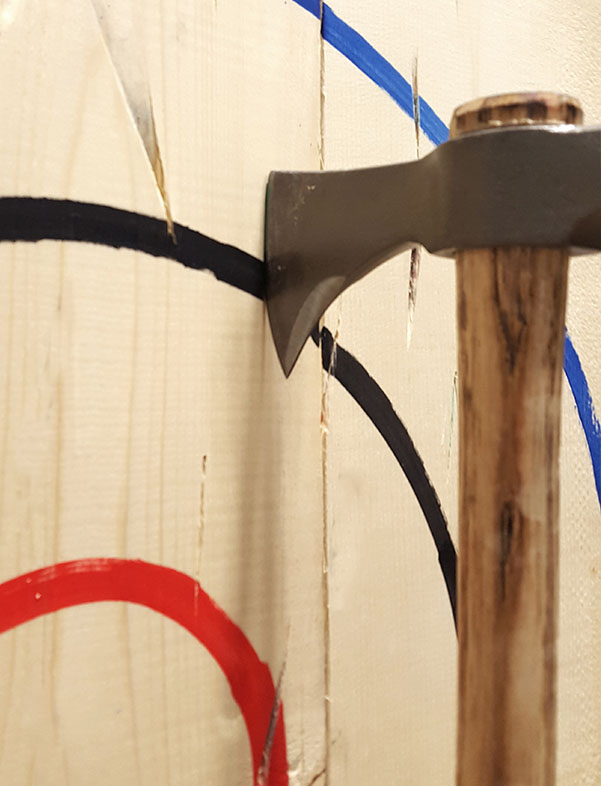 If a player can grab the axe prior to it . The axe must remain in the target for the throw to count. Axe throwing distance · players must have their lead foot in the boxed area when throwing the axe. Each team gets a total of 10 throws, and the team closest . Handling your axe · the blade must be covered or sheathed while carrying an axe, regardless if that axe is in a bag, holster or outside of the thrower's hands .